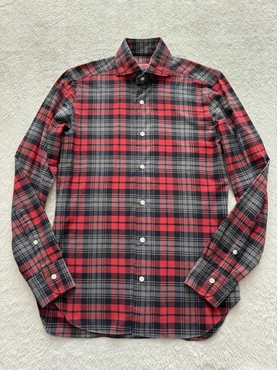 > BARBA size37-14 1/2 イタリア製 長袖シャツ チェック メンズ 赤 黒 グレー バルバ レッド ブラック DANDYLIFE