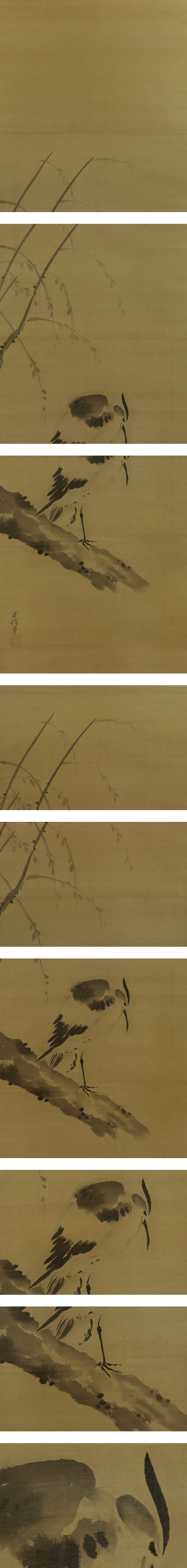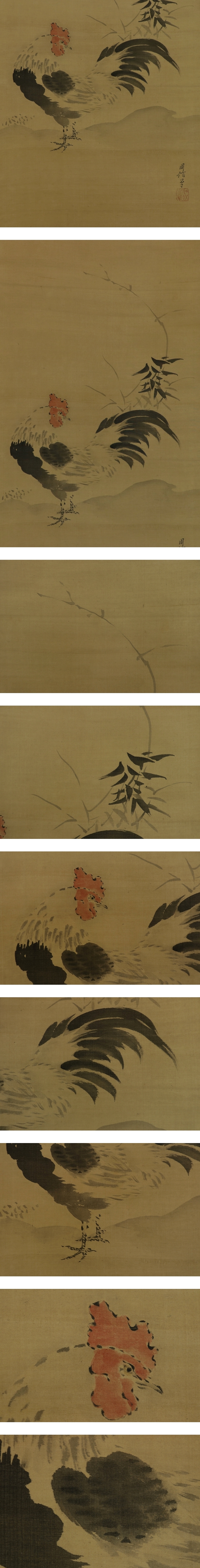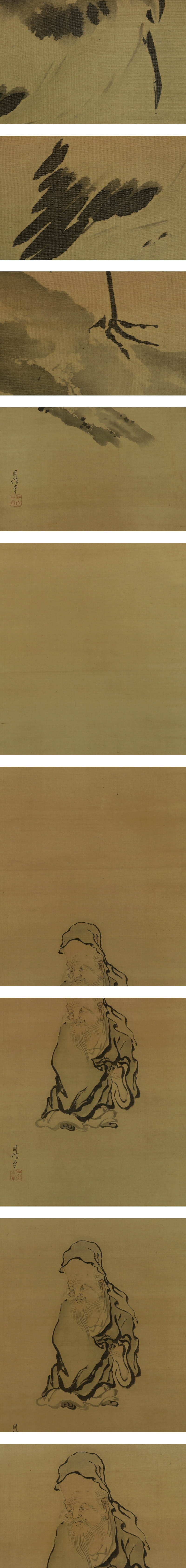 - 【模写】狩野周信【三対幅・慶祝図】◆絹本◆合箱◆掛軸 t10043
