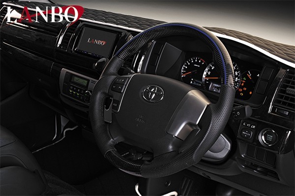 - LANBO ハイエース 200系 4型 /5型 /6型 /7型 プレミア ムカーボン ステアリング 【ブルーライン】LSTH200-PCB-BL