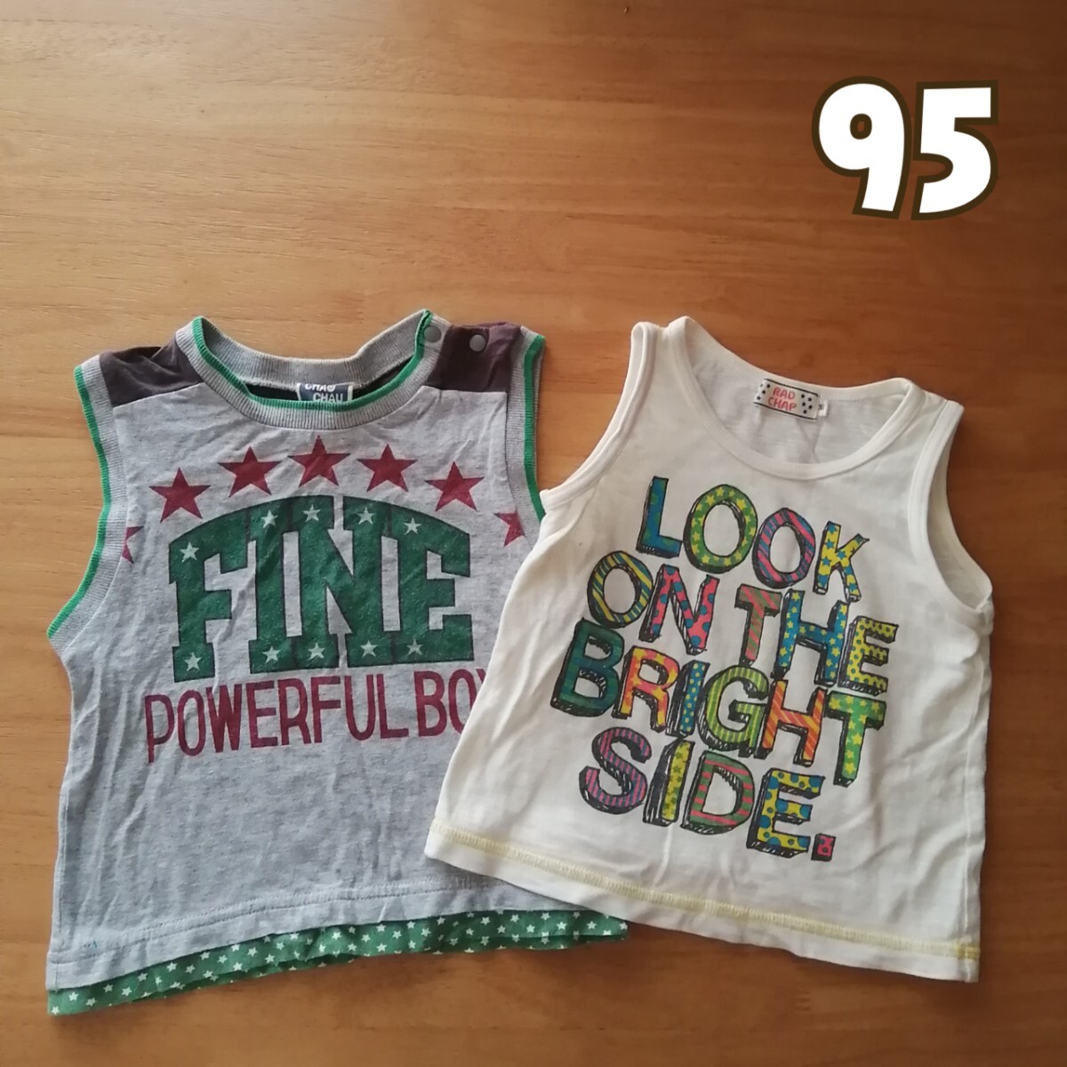 - 95(90-100 タンクトップ 男の子 夏 2枚セット ノースリーブトップス グレー ホワイト コットン こども服