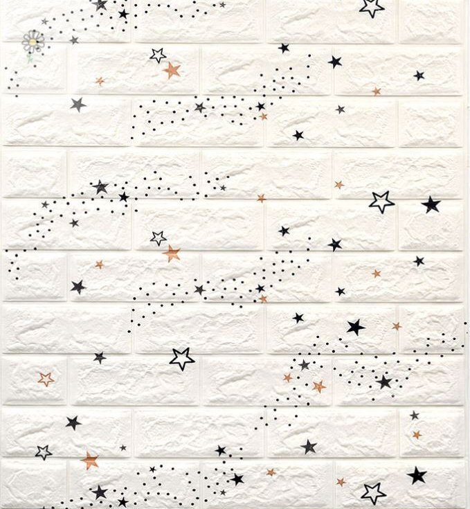 - 高品質 壁紙10枚 3Dウォールシール レンガ 防音 撥水加工 防カビ クッション 簡単リフォーム 星柄ホワイト