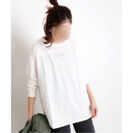 > 54◆ SLOBE IENA スローブ イエナ mon village ロゴ Tシャツ ロンT 長袖 カットソー ホワイト 綿 コットン 100% 人気 完売 日本製
