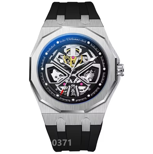 > 男性腕時計 機械式自動巻 メンズ ウォッチ スケルトンデザイン 3針 夜光表示 3ATM防水 シリコンベルト 紳士 新品未使用 6色選ぶ/シルバー