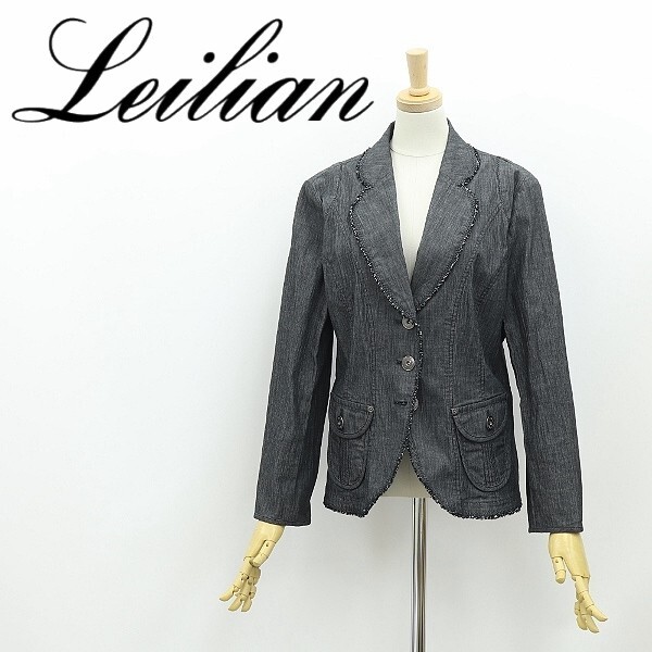 > ◆Leilian レリアン ストレッチ フリンジパイピング デニム 3釦 ジャケット 13