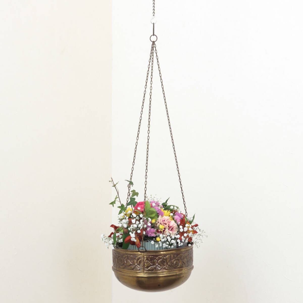 > 真鍮製の古いハンギングボウル/吊り下げ/プランター/ポット/花/造花/鉢植/植物/インテリア/店舗什器/ディスプレイ/雑貨/室内装飾/AL-0745/
