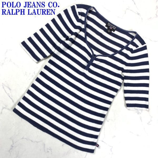 - ポロジーンズラルフローレンコットンボーダーPOLO JEANS CO. RALPH LAUREN カジュアル フロントフック型留め具有 半袖リブトップスS C9677