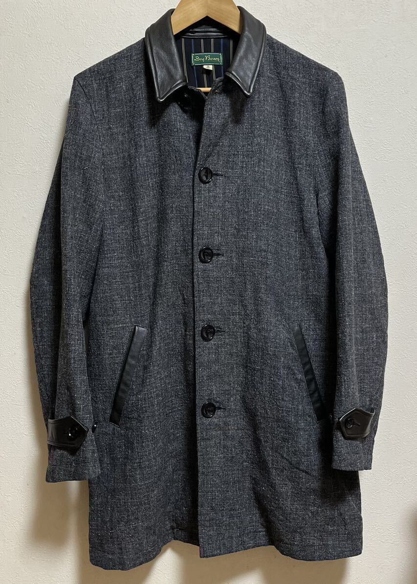 - 美品 ドライボーンズ コート S ステンカラー バルマカーン レザー ツートン 切替 ロングコート 50s ロカビリー ジャケット ヴィンテージ