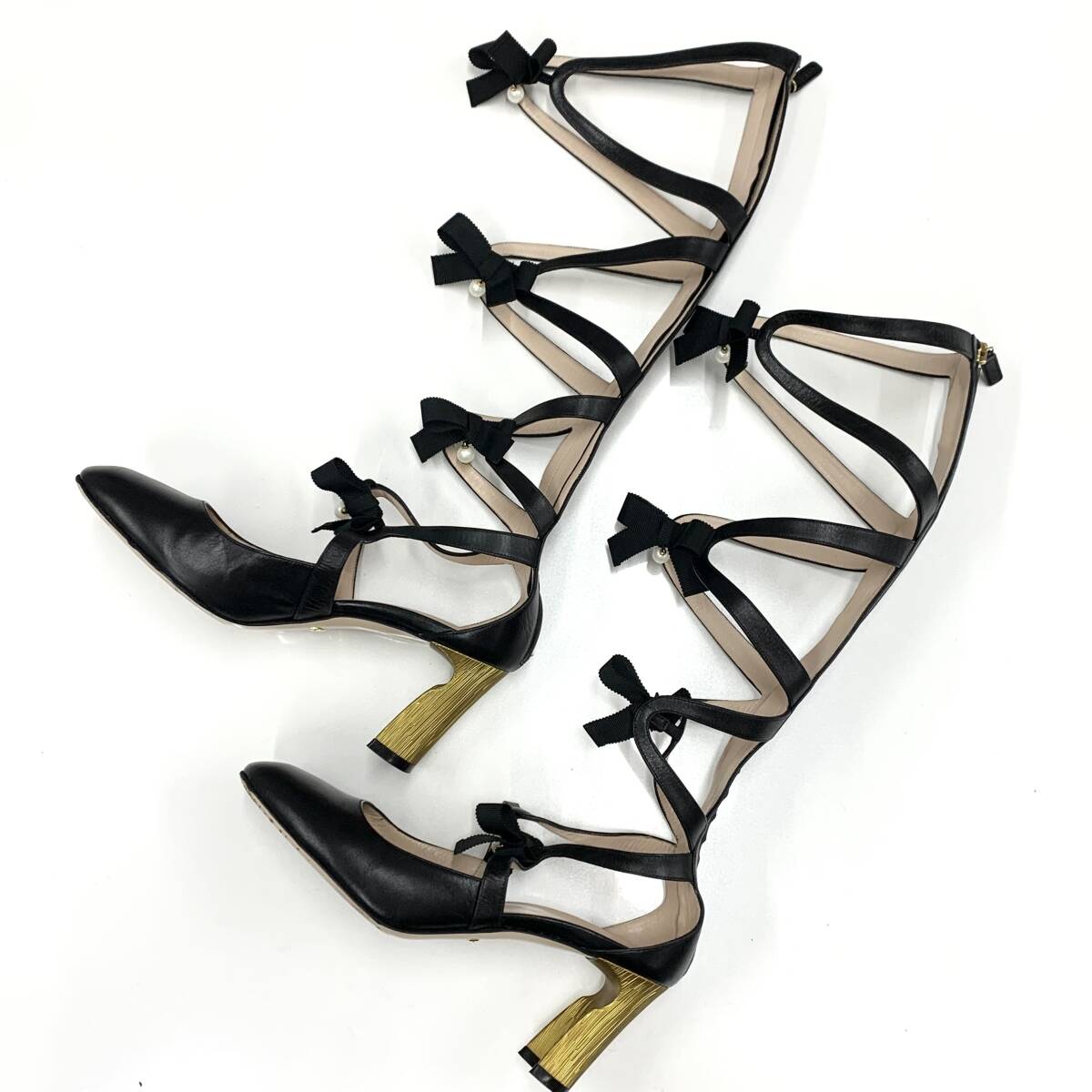 - 8888 グッチ レザー リボン パール パンプス ブラック