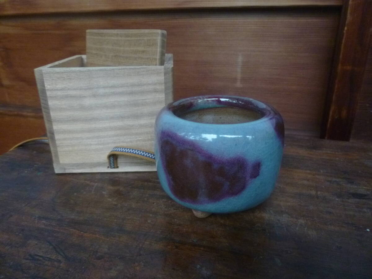 - 鈞窯釉香炉・小森忍(北斗窯)・保護箱