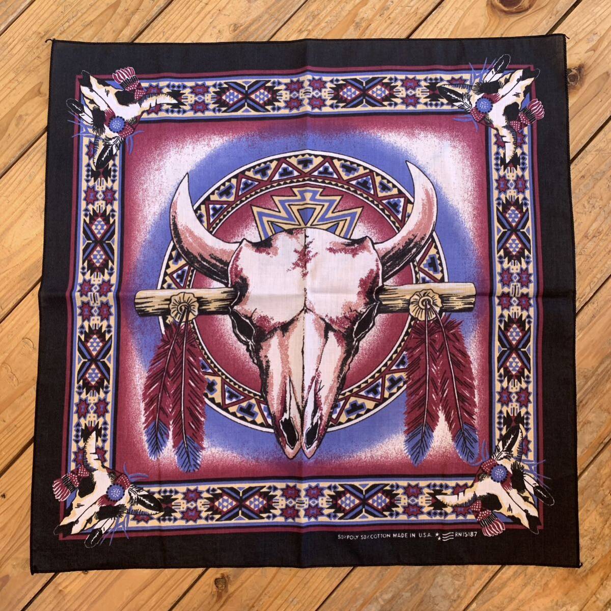 - 送料無料 Vintage ネイティブ アメリカン バンダナ バッファロースカル Made in USA インディアン アメリカ仕入れ 雑貨 ヴィンテージ A0946