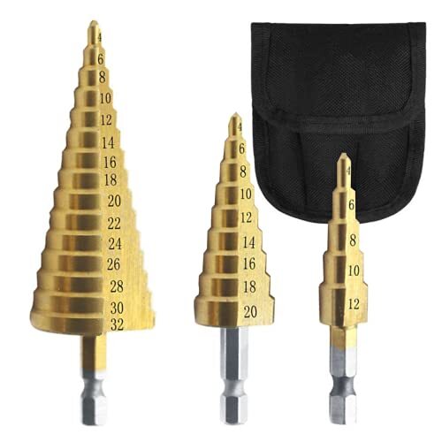 - XSAJU ステップドリル 六角軸 タケノコドリル チタンコーティング 3本 セット 薄い金属 木工用 専用ポーチ付き