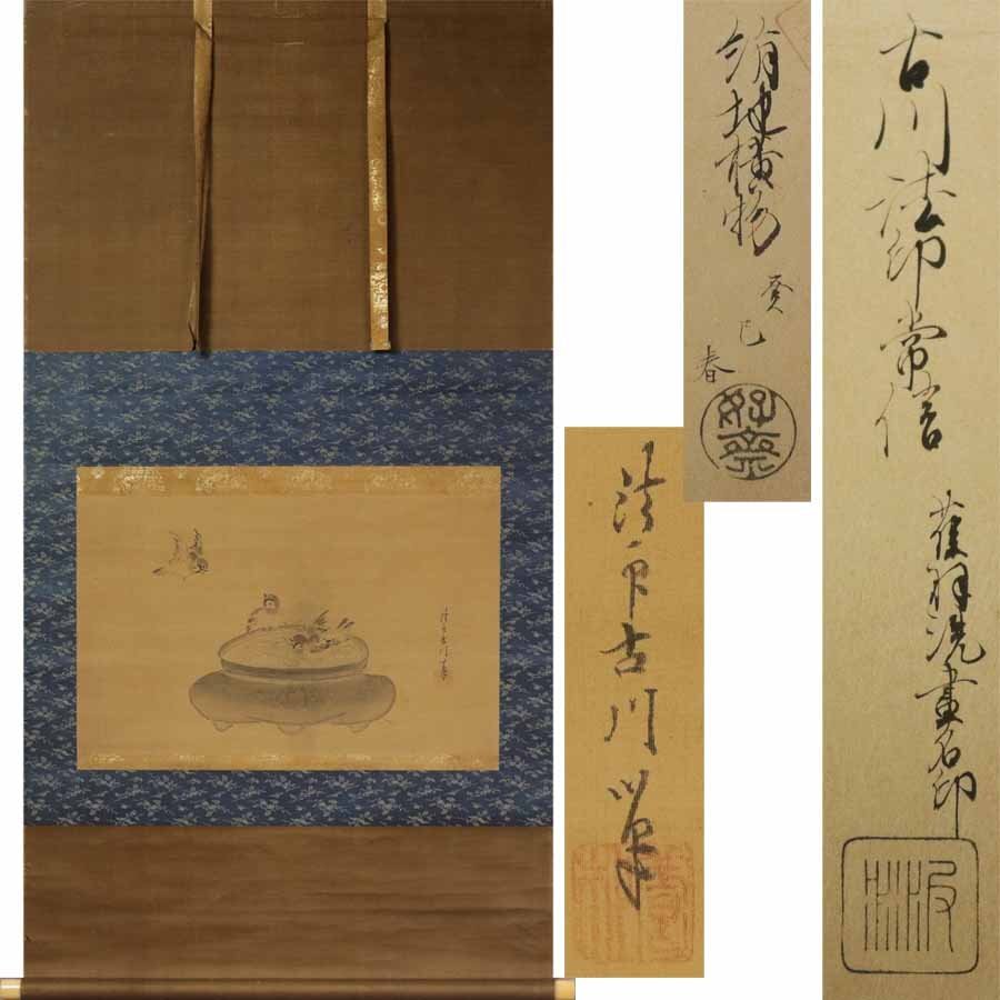 - 《源》【即決・送料無料】《江戸期・古画》狩野養朴常信 筆 群雀羽洗図/大倉好斎極札・箱付