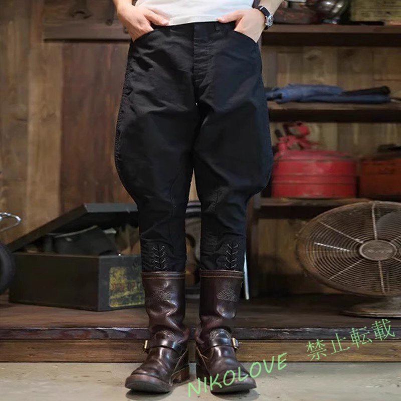 - メンズ バイクパンツ コットン ジョッパーズパンツ バイカーライダース モーターサイクルパンツ 軍パン ワークパンツ 黒S~2XL LD031