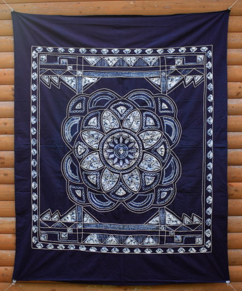 - 藍染 刺し子 テーブルクロス 大判 タペストリー マルチカバー 横幅約140cm 縦幅約180cm 綿 【t-3】