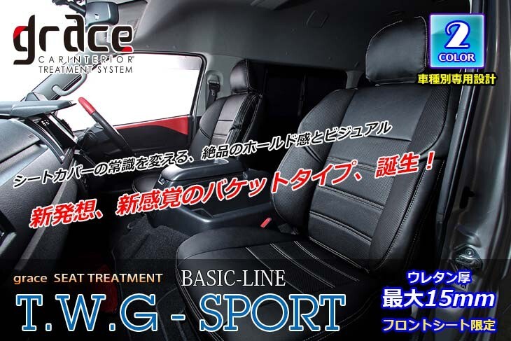 コストパフォーマンスに優れたシートカバー、T.W.Gのデザインやカラー、風合いはそのままに、背面の両ショルダーを立体的に縫製したバケット風シートカバーです。特別な立体裁断ウレタンを採り入れ実現したスポーティーなビジュアルと、体をしっかりと支える抜群のホールド感にこだわりました。カラーはブラックレザーベースに、ブラックステッチとなります。