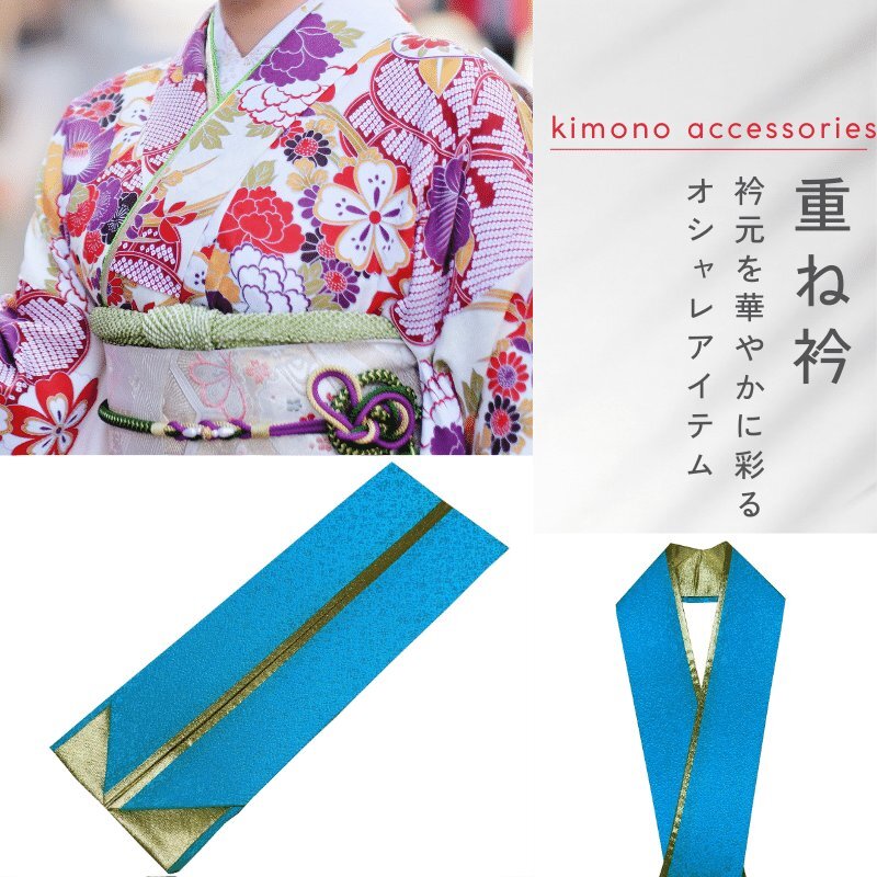 - 重ね襟 振袖 重ね衿 振袖用 ブルー×金 伊達襟 伊達衿 リバーシブル シンプル 裏金 豪華 成人式 卒業式 袴 フォーマル ブルー 青 金 着物