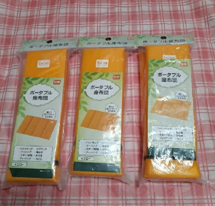 - DCM ポータブル座布団 イエロー 3点セット ポータブル 座布団 ざぶとん クッション アウトドア キャンプ 運動会 釣り レジャー マット