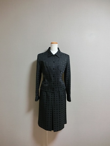 > 極美品 M`S GRACY エムズグレイシー モノグラム ロゴ柄 清楚 スカート セットアップスーツ ブラック 38