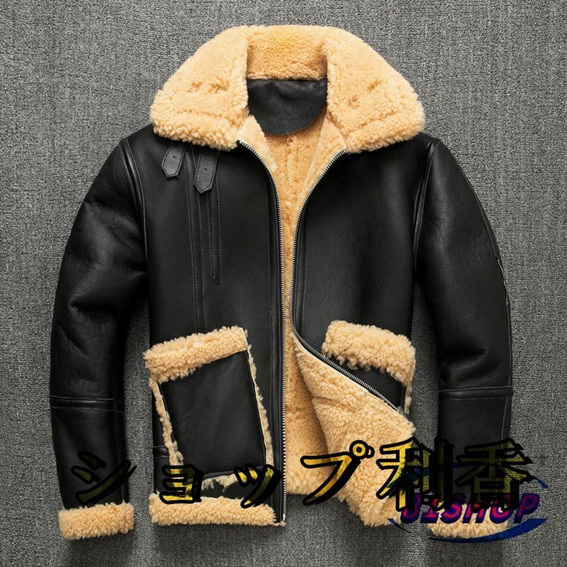 - 本革 防寒性バッチリ 暖か毛皮/高級シープスキン羊革/新品レザーフライトジャケット ライダース 革ジャ