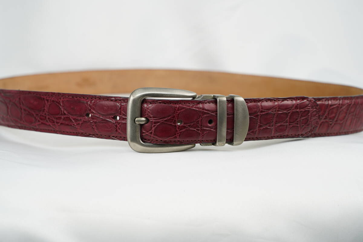- イタリア製 最高級 クロコダイル レザー クロコ 本革 ベルト 赤系 ロングサイズ 35mm