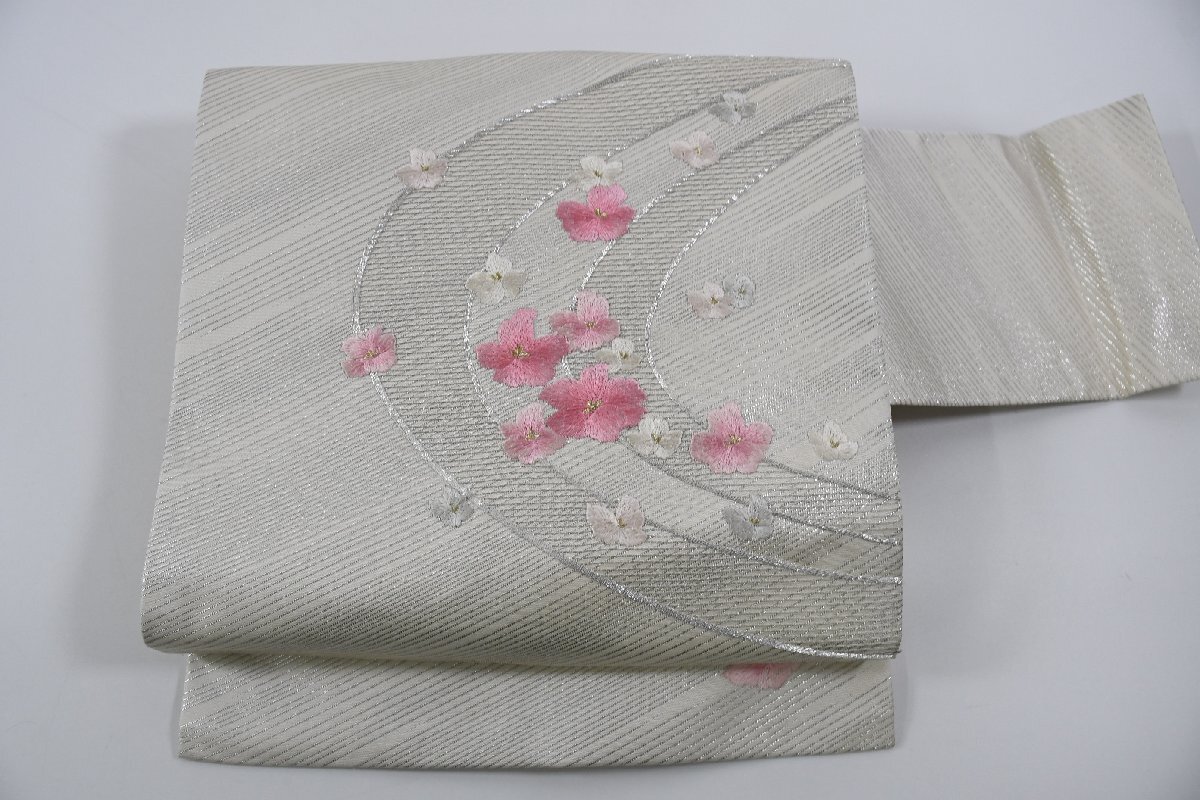 - 名古屋帯 刺繍 花 帯丈358cm ★着物屋 ne-9712 桜庭呉服店