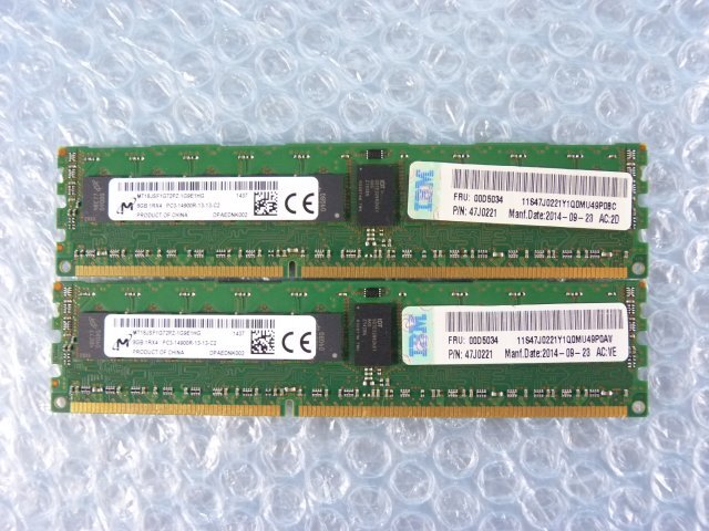 - 1PVI // 8GB 2枚セット 計16GB DDR3-1866 PC3-14900R Registered RDIMM 1Rx4 MT18JSF1G72PZ-1G9E1HG 00D5034 47J0221 // IBM x3550 M4 取外