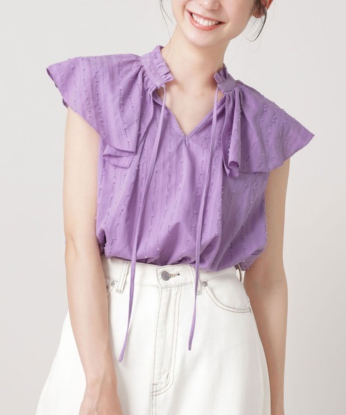 > 新品タグ付き nano・universe ナノユニバース ラッフルスリーブ ドビーブラウス ノースリーブ