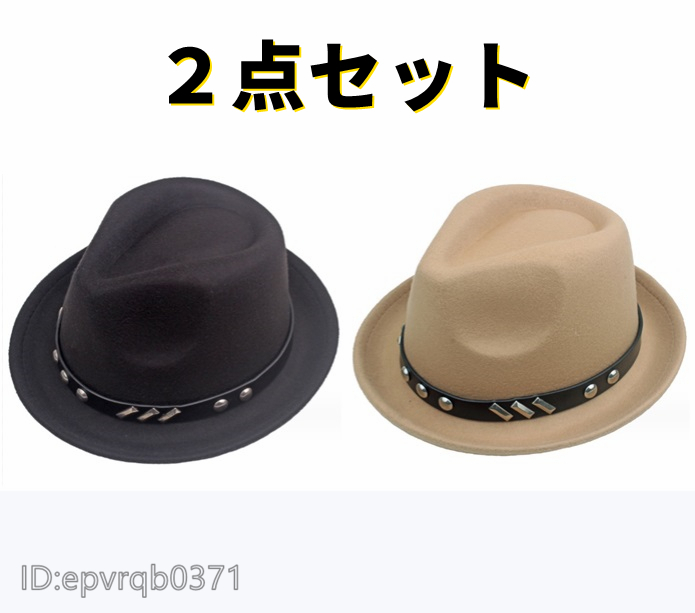 - 2点セット ソフト帽★新品 メンズキャップ ジャズハット 中折れハット 紳士 帽子 フリーサイズ 56-58センチ 黒/カーキ