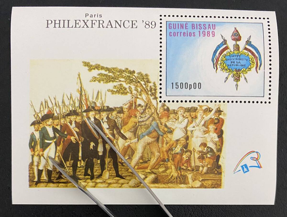 - ギニアビザウ フィレックフランス フランス革命200年 絵画 美術 小型シート1種完 未使用 NH