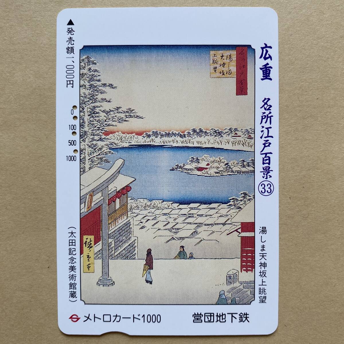 - 【使用済】 浮世絵メトロカード 営団地下鉄 東京メトロ 歌川広重 名所江戸百景32 湯しま天神坂上眺望