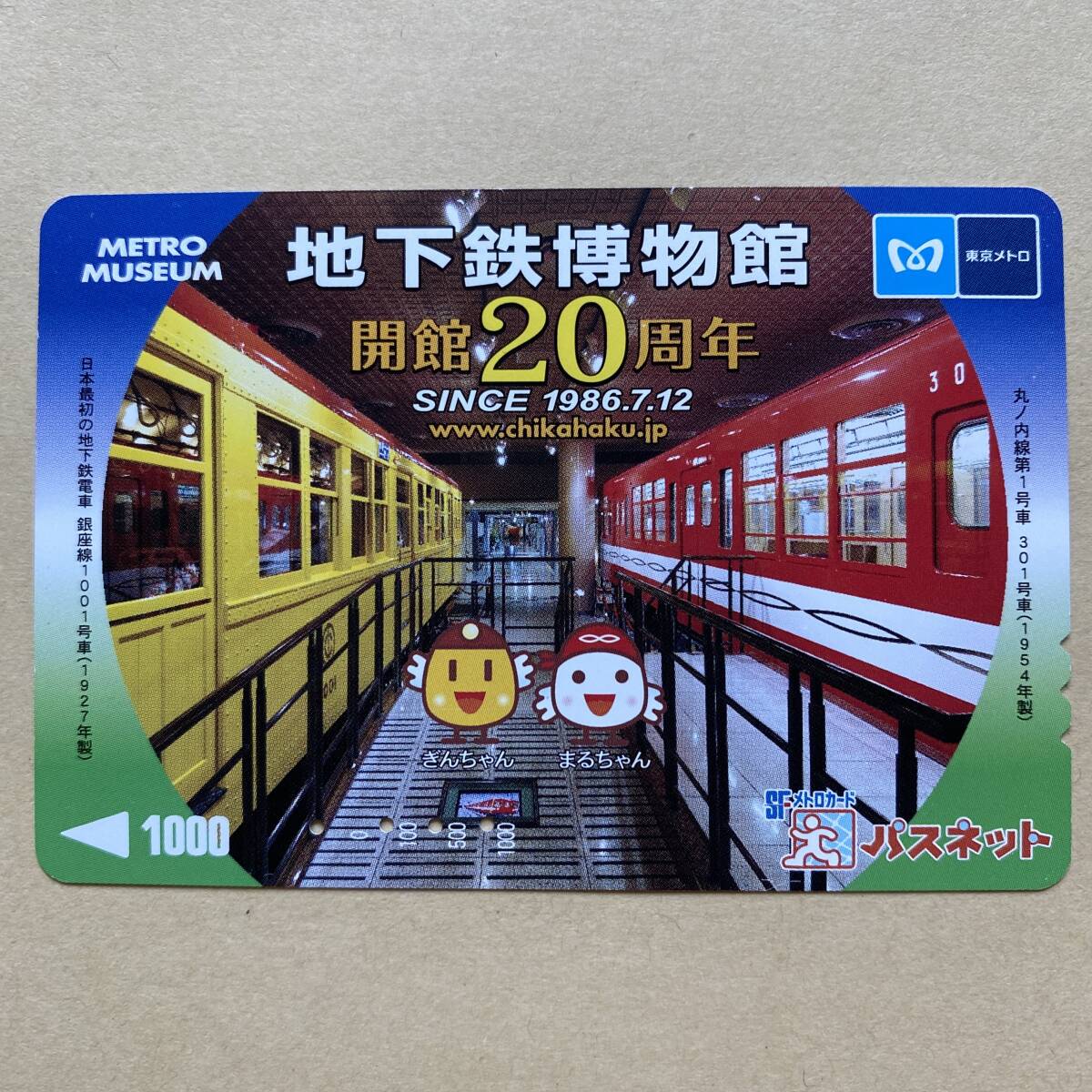 > 【使用済】 パスネット 営団地下鉄 東京メトロ 地下鉄博物館 開館20周年 丸ノ内線第1号車 301号車 日本最初の地下鉄電車 銀座線1001号車