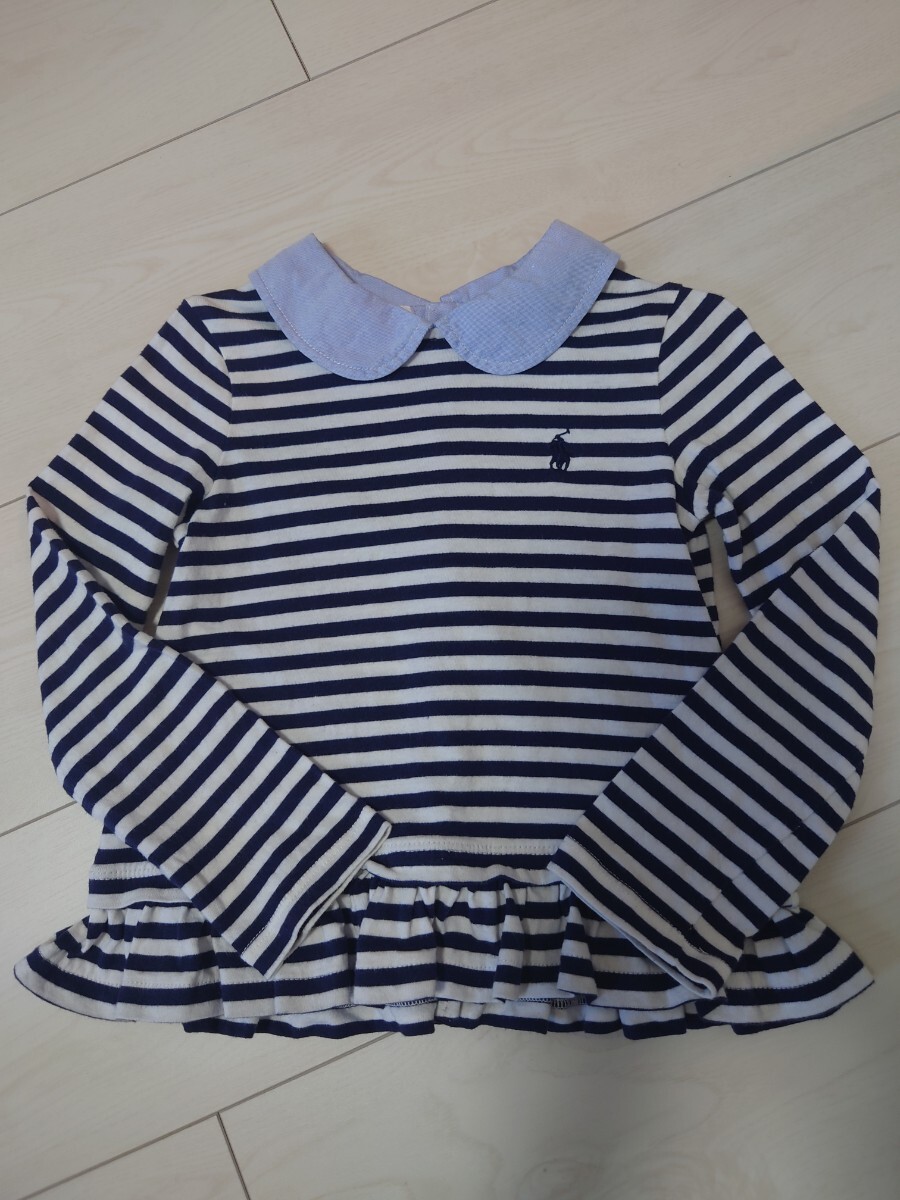> 【中古美品】ポロラルフローレン☆襟付きカットソー 3T 100 女の子 ガールズ ボーダー 長袖Tシャツ カットソー 長袖 POLO ポニー