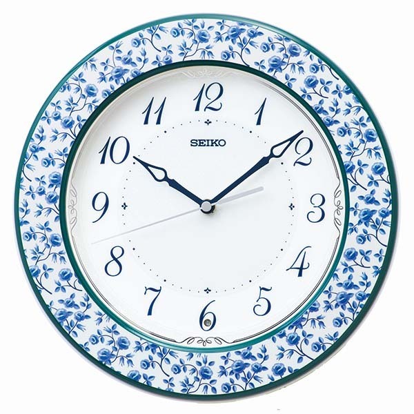- セイコー クロック 電波 壁掛け時計 KX266L スイープセコンド 木枠 小花模様 アナログ SEIKO
