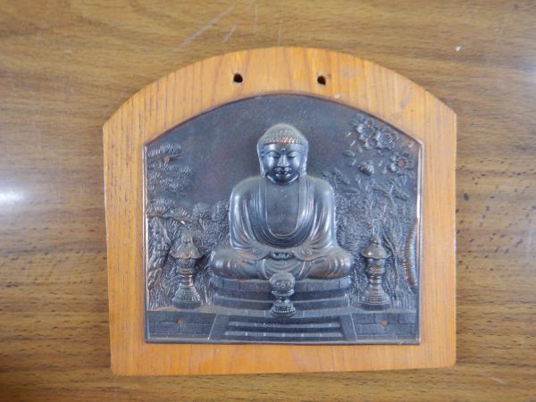 - 鎌倉大仏 額 金属製 15x13.5d2.5cm 壁掛け プレート 032801 KAMAKURA お土産 日本製 昭和レトロ