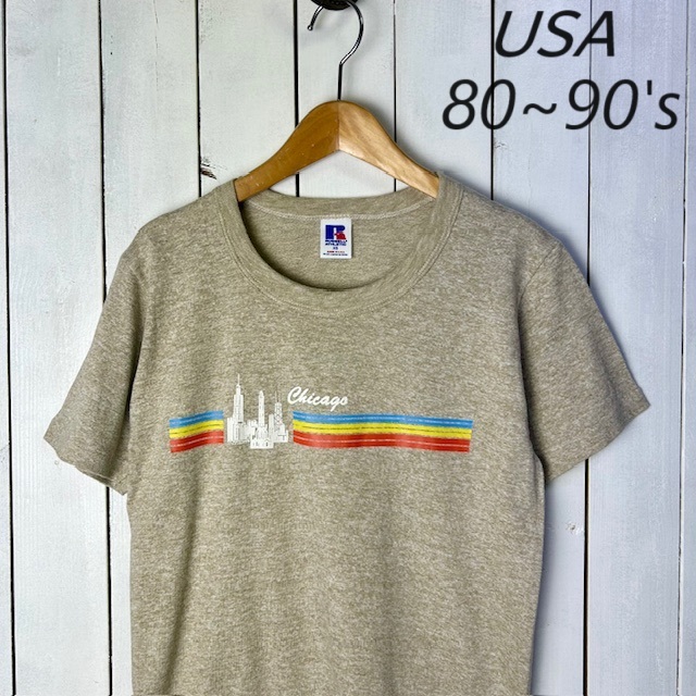 > T●96 USA古着 80s~90s USA製 杢チャコール Tシャツ XS RUSSELL ラッセル オールド ヴィンテージ アメリカ古着 シングルステッチ