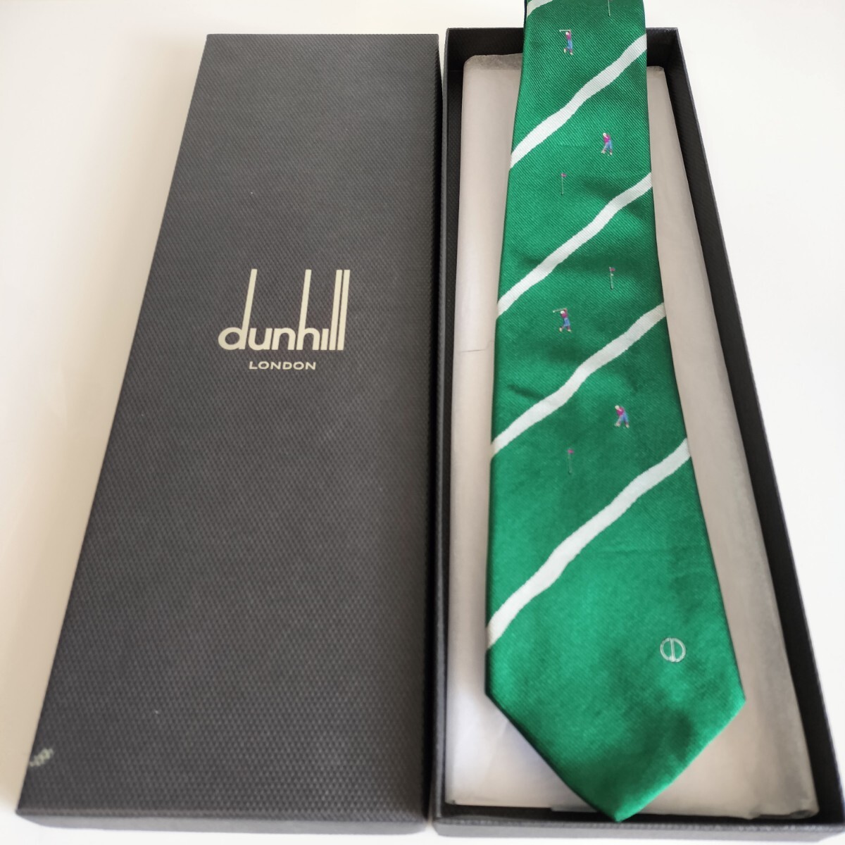 - ダンヒル(Dunhill)緑ゴルフストライプDロゴネクタイ