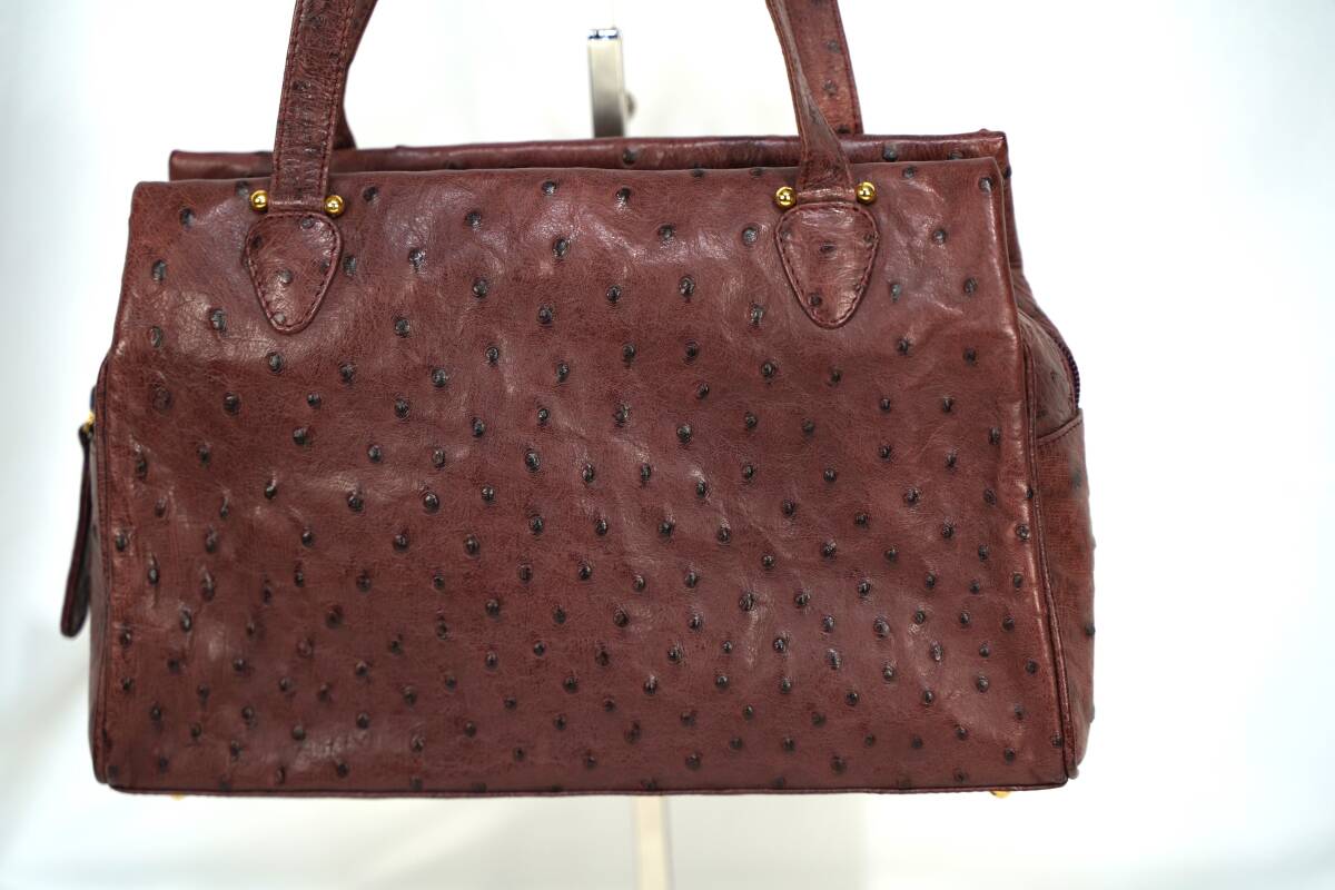 - ドイツ製 マジェスティック ハンドバッグ エキゾチックレザー オーストリッチ本革 エンジ