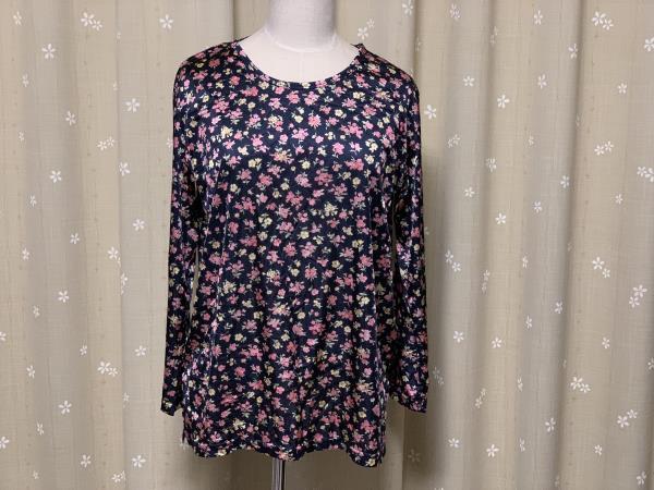- KS166 Paspa Pochette 花柄Tシャツ 長袖 M 紺 パジャマ上衣のみ