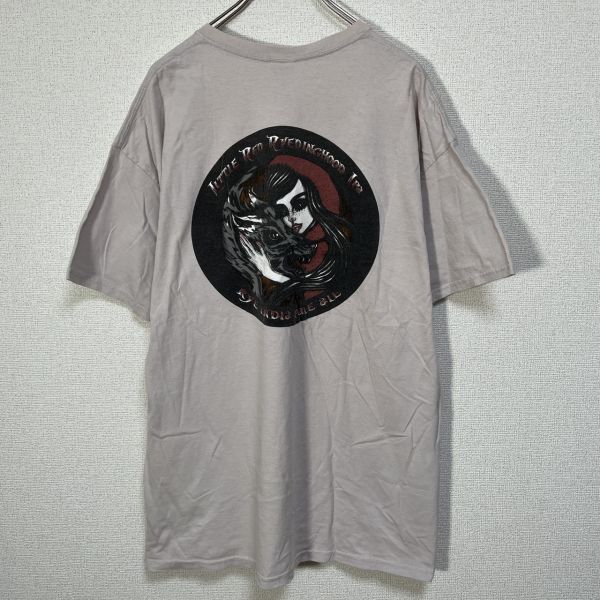 - ギルダン 半袖Tシャツ 童話 赤ずきん オオカミ アニマルピンクホラー39 古着 入手困難 激レア 人気 ビッグプリント バックプリント