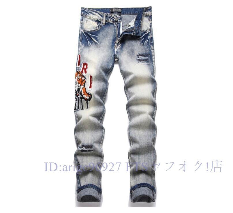 > B1255新品人気品パンツ デニムパンツ 刺繍 ジーンズ ジーパン スキニーパンツ メンズ ストレッチ バイクジーンズ ボトムスW38サイズ選択可
