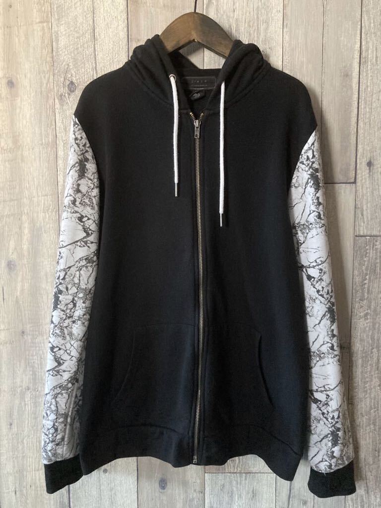 > ■送料込み即決■ FOREVER21 MEN ジップアップパーカー ストーン柄 切り替え デザイン フォーエバー21 メンズSサイズ フーディー 大理石