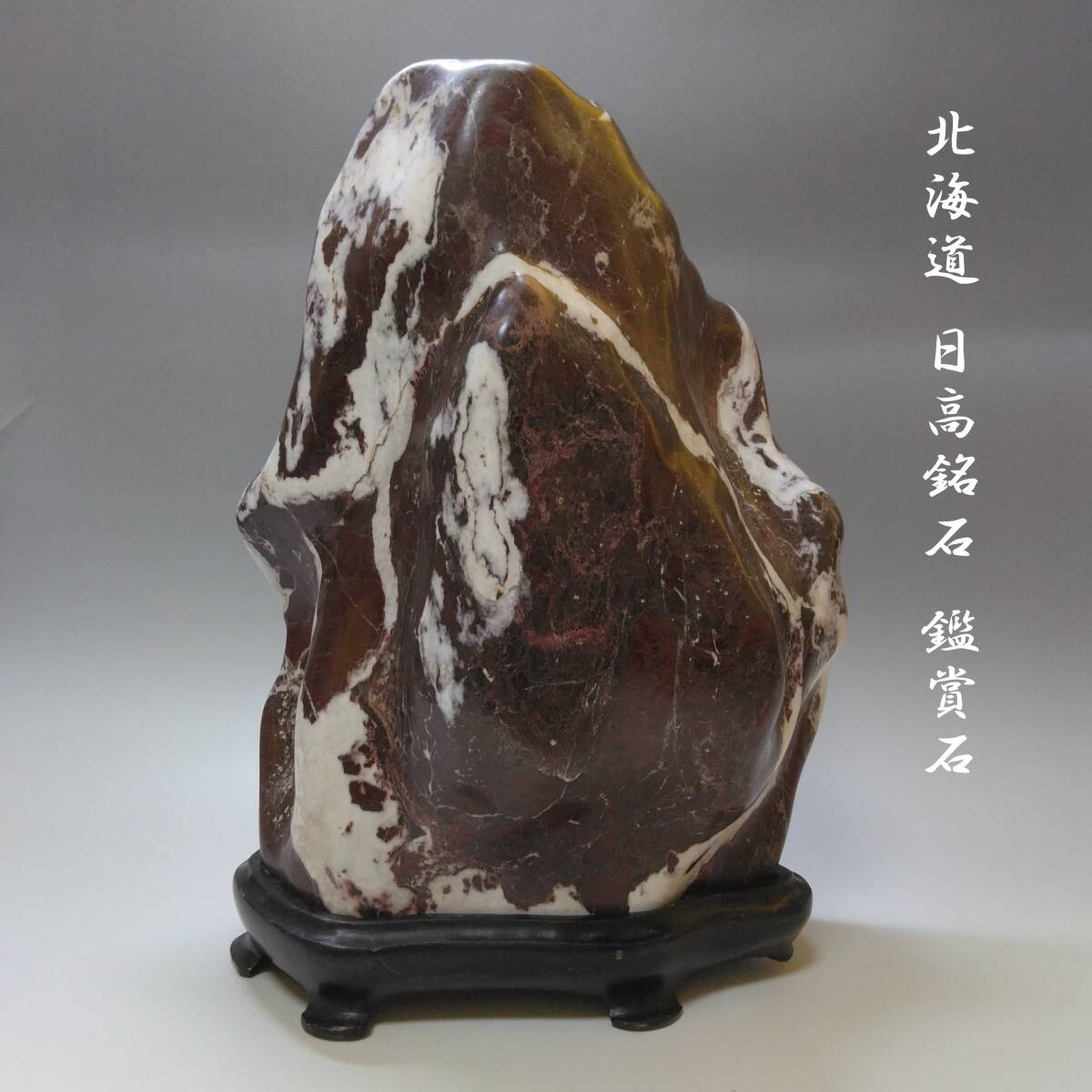 - 【T-194】北海道 日高銘石 鑑賞石 自然石 木製台座付