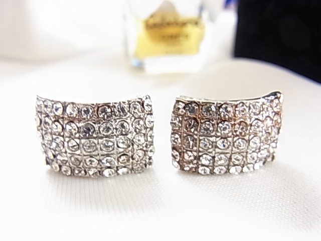 > ビンテージ/ヴィンテージ きらきらと美しく輝くキュービックジルコニア シルバートーンで大人上品な印象 ひしめく輝石 イヤリング■