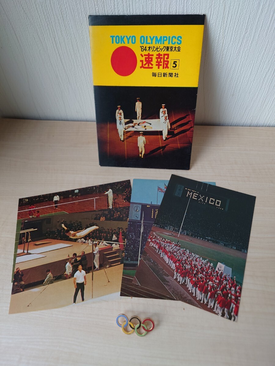 - 1964年 オリンピック東京大会 エンブレムピンバッジ 毎日新聞 速報 記念絵はがきセット ロゴピンバッジ アンティーク 当時物 コレクション