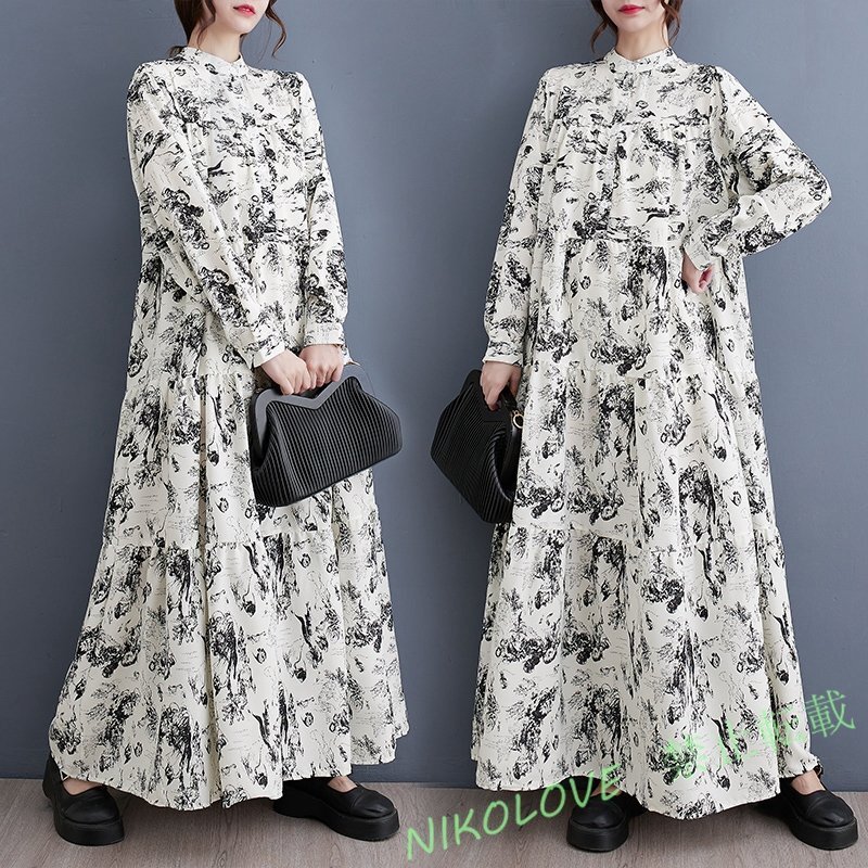 - 新品ゆったり大きいサイズ カジュアル おしゃれ花柄マキシロングワンピース ホワイト系 LE574