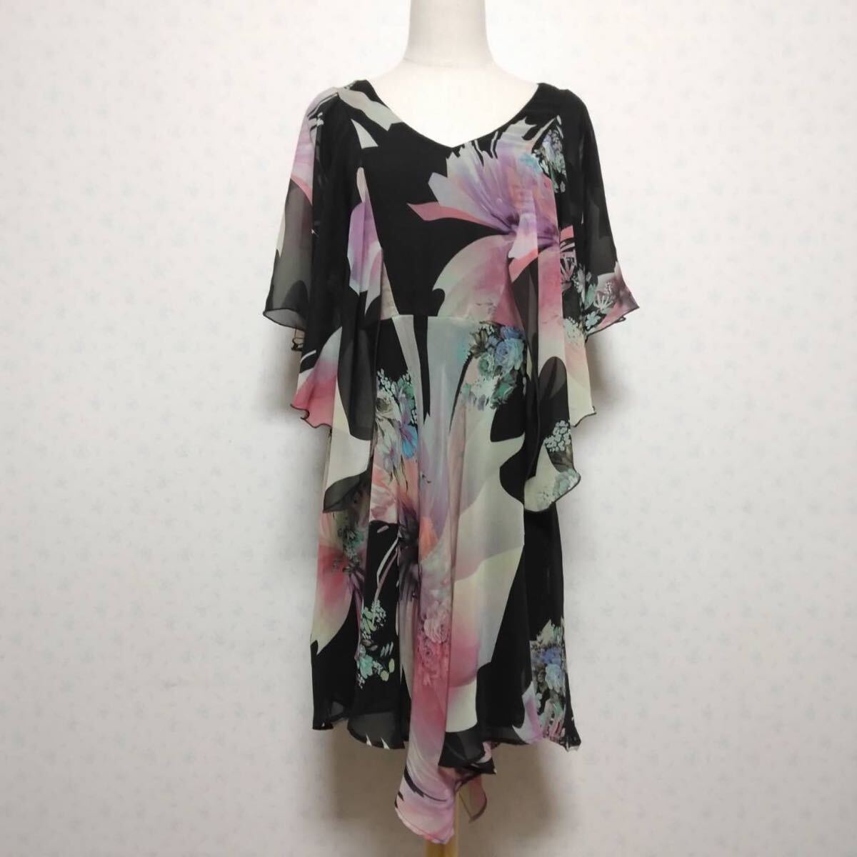 > BACKSTAGE 花柄 ひざ丈ワンピース オーストラリ製 Sサイズ フラワー柄 Vネック レディースファッション カジュアル 膝丈