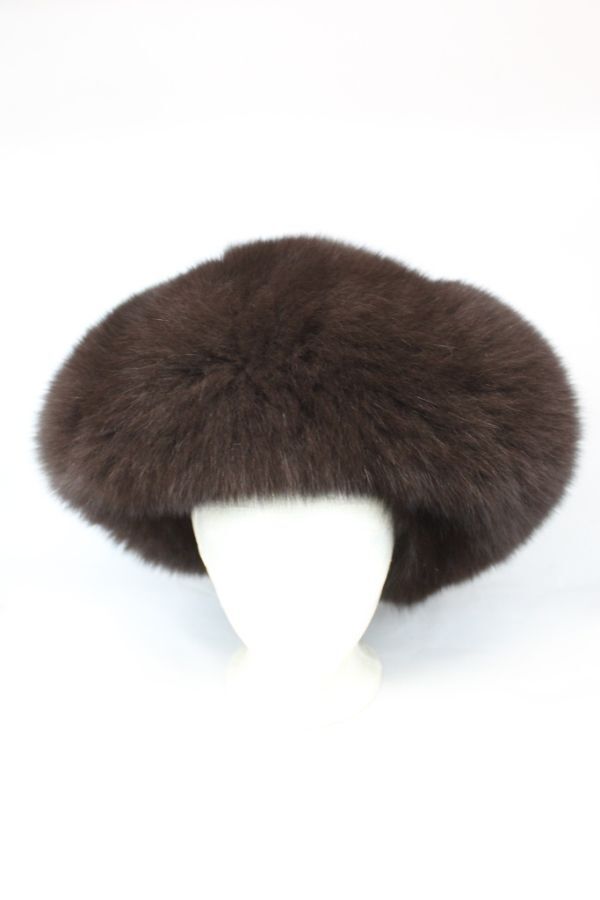 - カスタムメイド ブラウン フォックス毛皮ファー・ハット 帽子 ベレー・スタイル