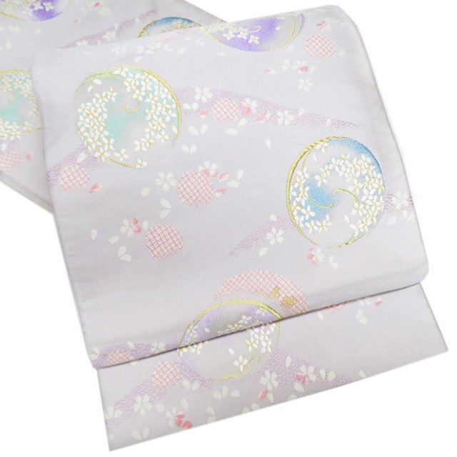 - 袋帯 中古 リサイクル 正絹 フォーマル 仕立て上がり 六通 花模様 花四季譜 白菫色 多色 金 きもの北條 A1033-16