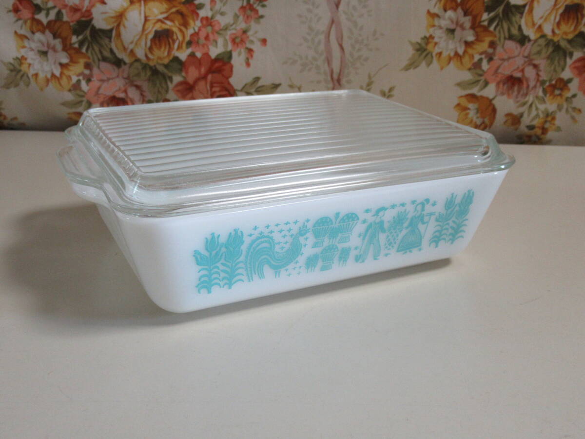 - R6 06★オールドパイレックス ヴィンテージ アメリカ製 ミルクガラス USA食器/グラタン皿 バタープリント