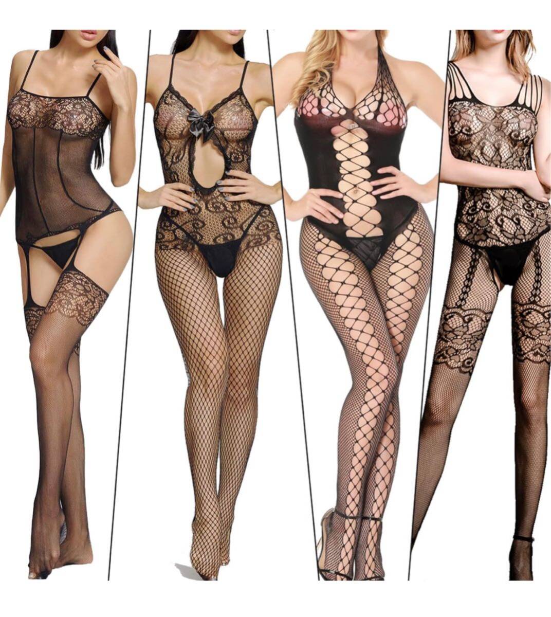 - セクシーボディストッキング 穴あき全身網タイツシレオタード ランジェリけ オープンクロッチコスプレー 4枚パンスト